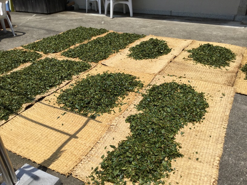 農薬も肥料も使わずに育ったお茶を蒸して太陽で乾かした。